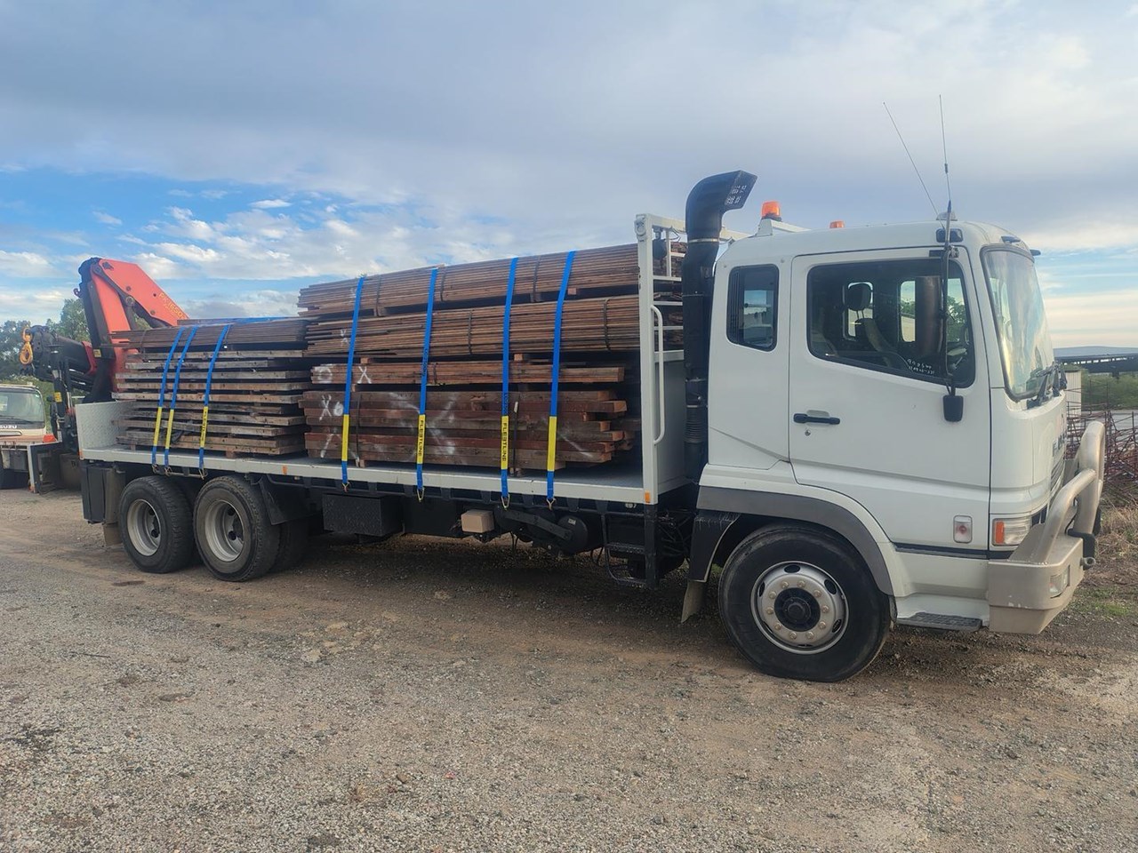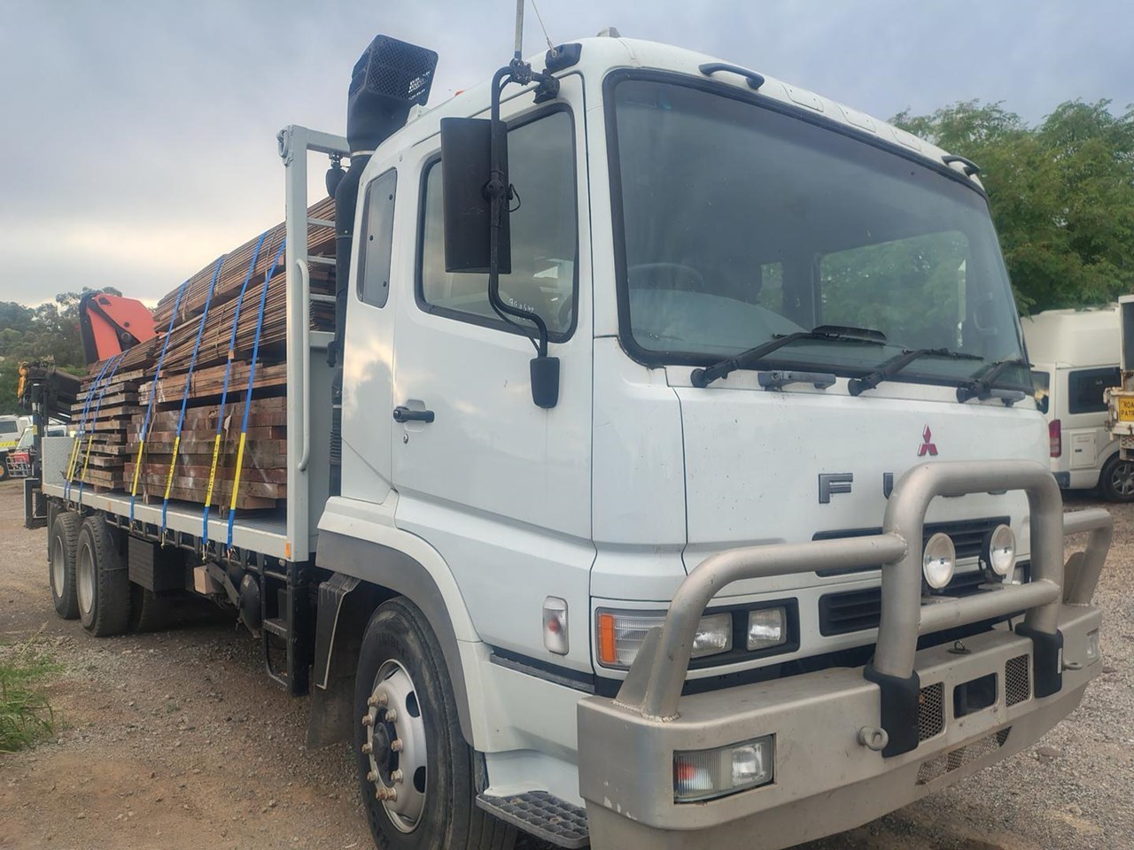 2008 Fuso FV500 6x4 crane truck, this truck will be checked and serviced, has low original kms. Fitted with rear mount Palfinger 16502B Crane, will lift 3400kg @4.3m, 2370kg @ 5.9m, 1730kg @7.9m, 1330kg @10.2m, with remote, and running rope