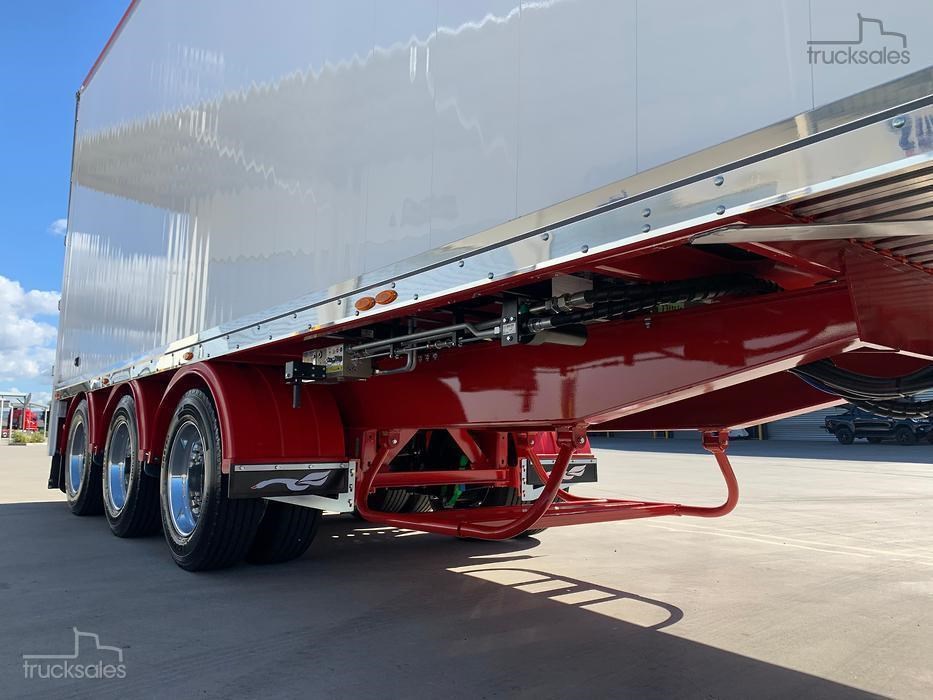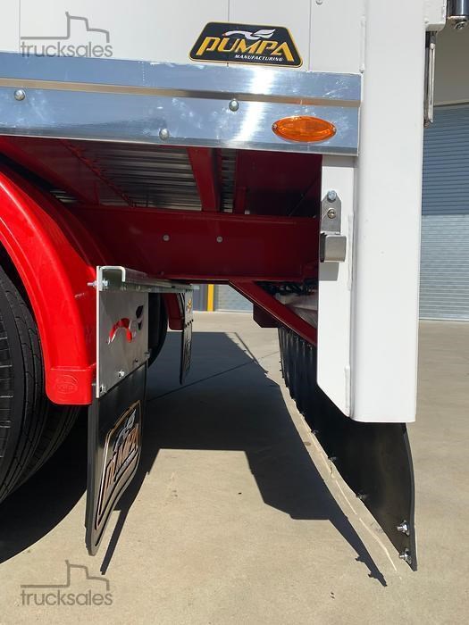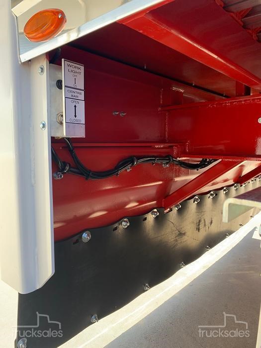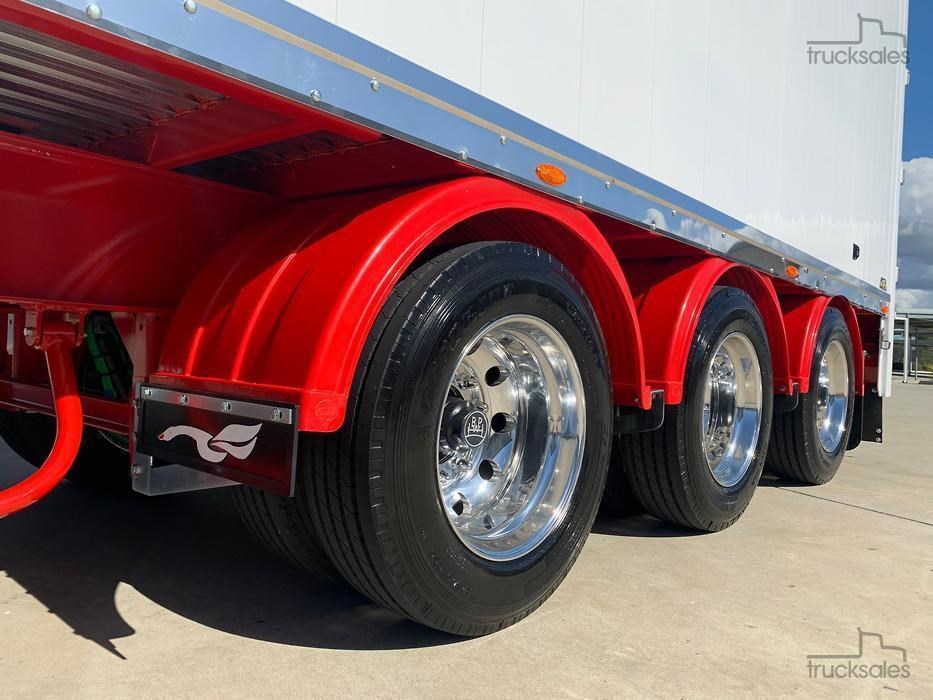 IN STOCK!!!!! New 2026 Pumpa 45ft wedge, White with red chassis, Hendrickson Intraax airbag Suspension, HXL7 Axles, EBS c/w Auto Slacks, Cargo CF500 6mm ribbed floor, Manual vinyl rollover tarp c/w Air Operated Flip Over Centre Bar, alloy barn doors, Hydraulic sweeper tarp, Front access door, Tail-light protection tarp, Right weigh scale, Polished alloy rims, 10 stud 285 PCD, Road Train Bracket & coupling. Call for a Quote & Inspection today.